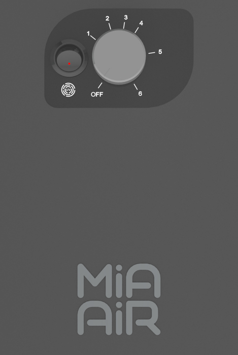Очиститель воздуха Mia Air (Мия Эир) Lite антрацит (без сенсорного экрана), оснащенный HEPA-фильтром. Очистка воздуха достигается значительным уменьшением количества пыли в окружающем воздухе. Забор воздуха осуществляется через предварительный фильтр, а очищенный проходит через УФ-лампу и выпускается через диффузор.