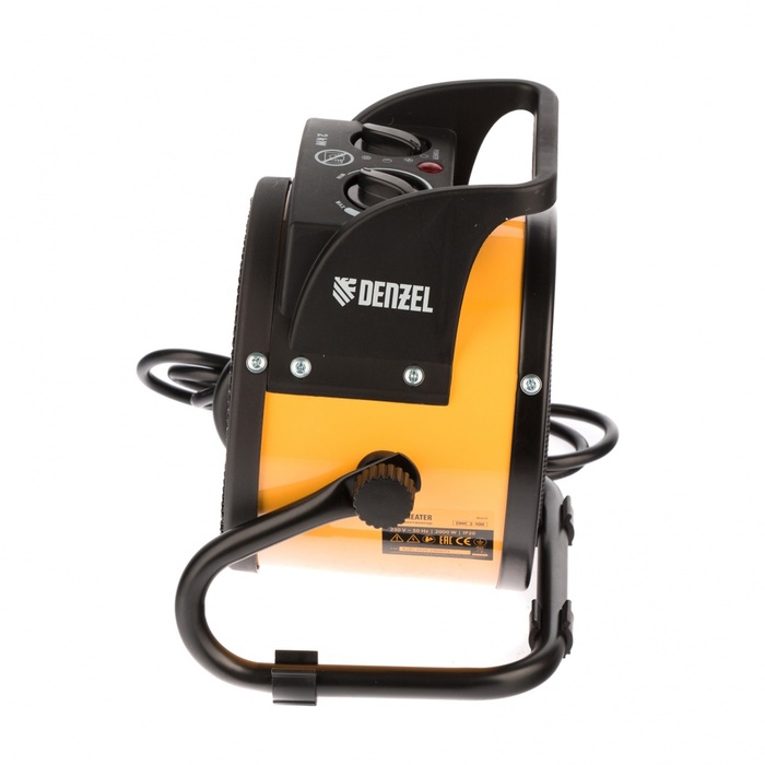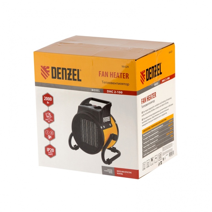 Тепловая пушка DENZEL (Дензел) DHC 2-100 используется не только для обогрева помещений, сушки вещей, но и для проветривания без нагрева. Модель очень хорошо работает в любое время года при любой погоде — в холод обогревает помещение, в жару используется как вентилятор. Светодиод загорается при включении и информирует о работоспособности устройства.
