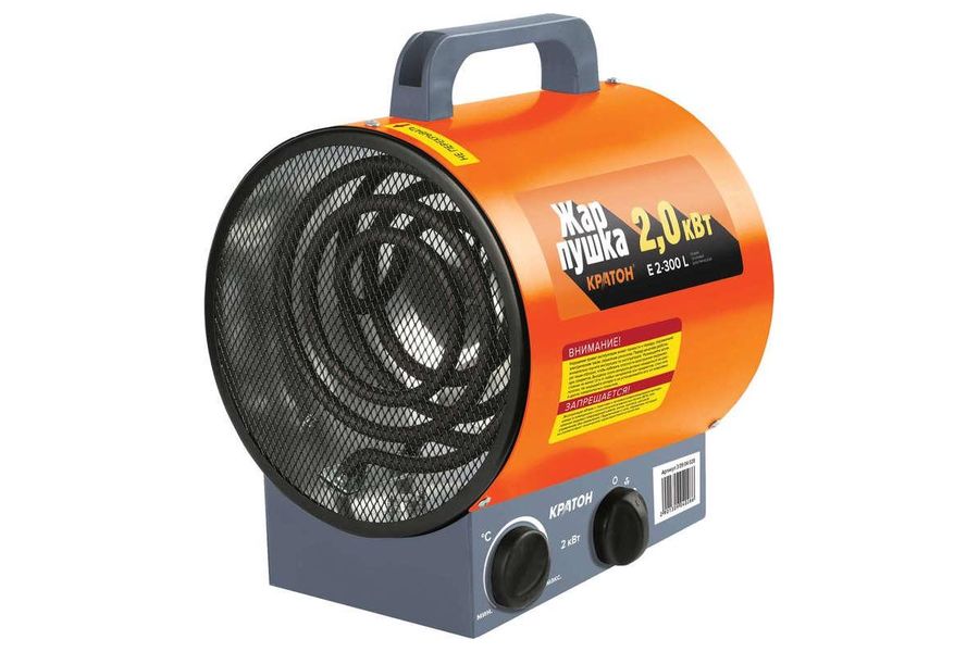 Модель Кратон Жар-пушка Е 2-300 L – это особый вид отопительного устройства, который помещен в металлический корпус. Нагрев воздуха обеспечивается работой нагревательного элемента, а его циркуляция – вентилятором. Агрегат имеет терморегулятор, позволяющий настраивать необходимую в помещении температуру.